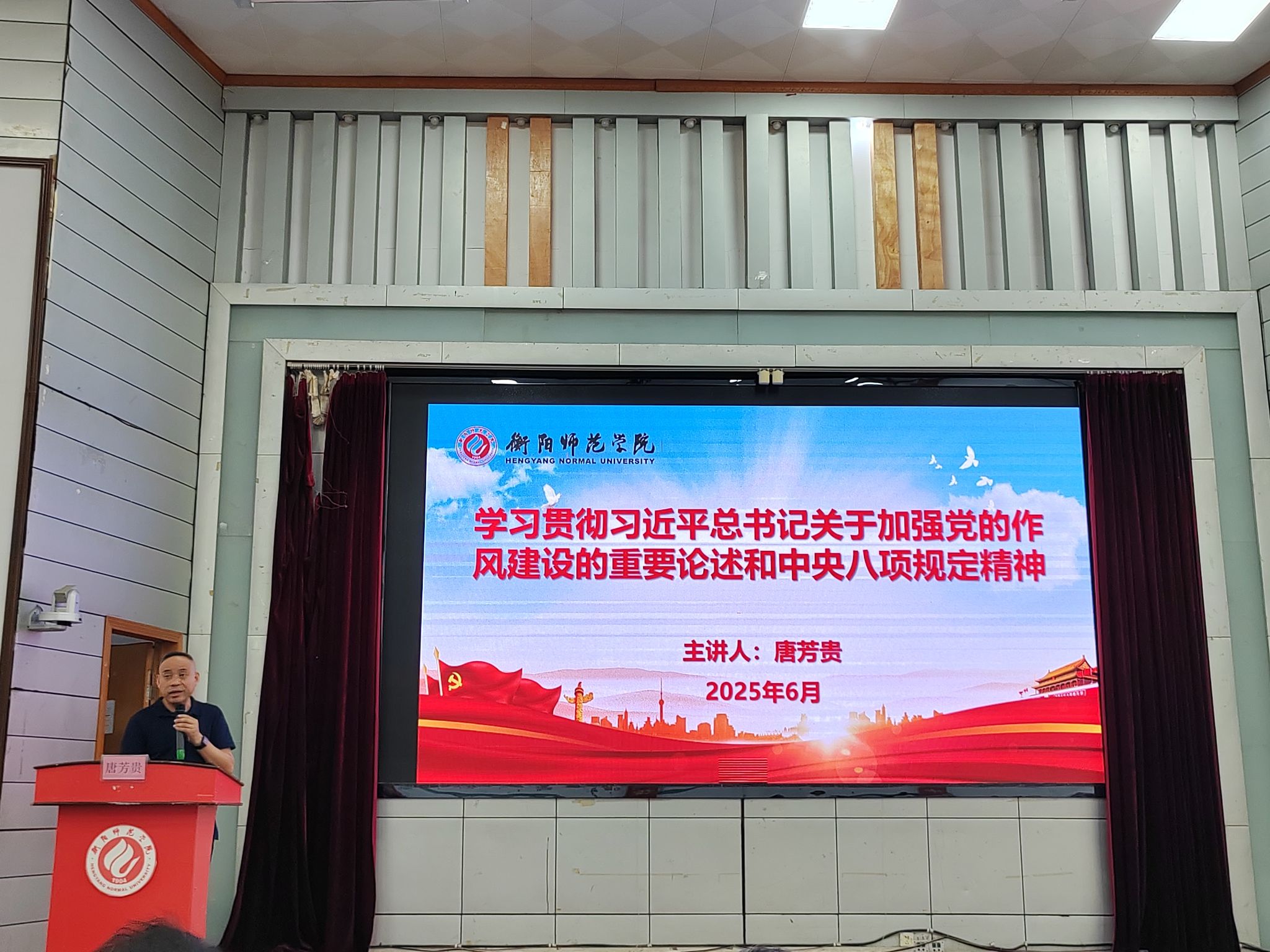 唐芳贵副校长为师生党员们上党课