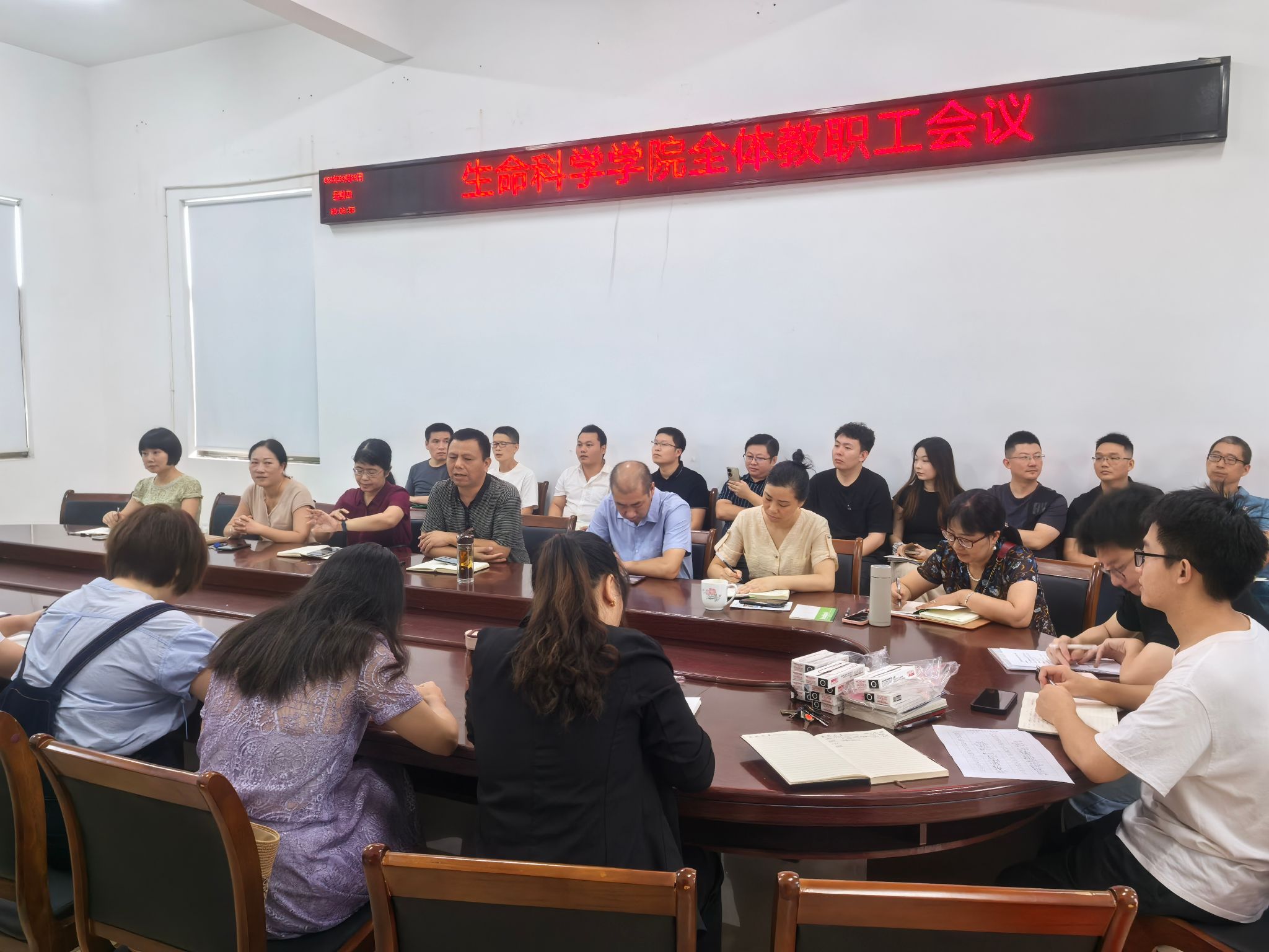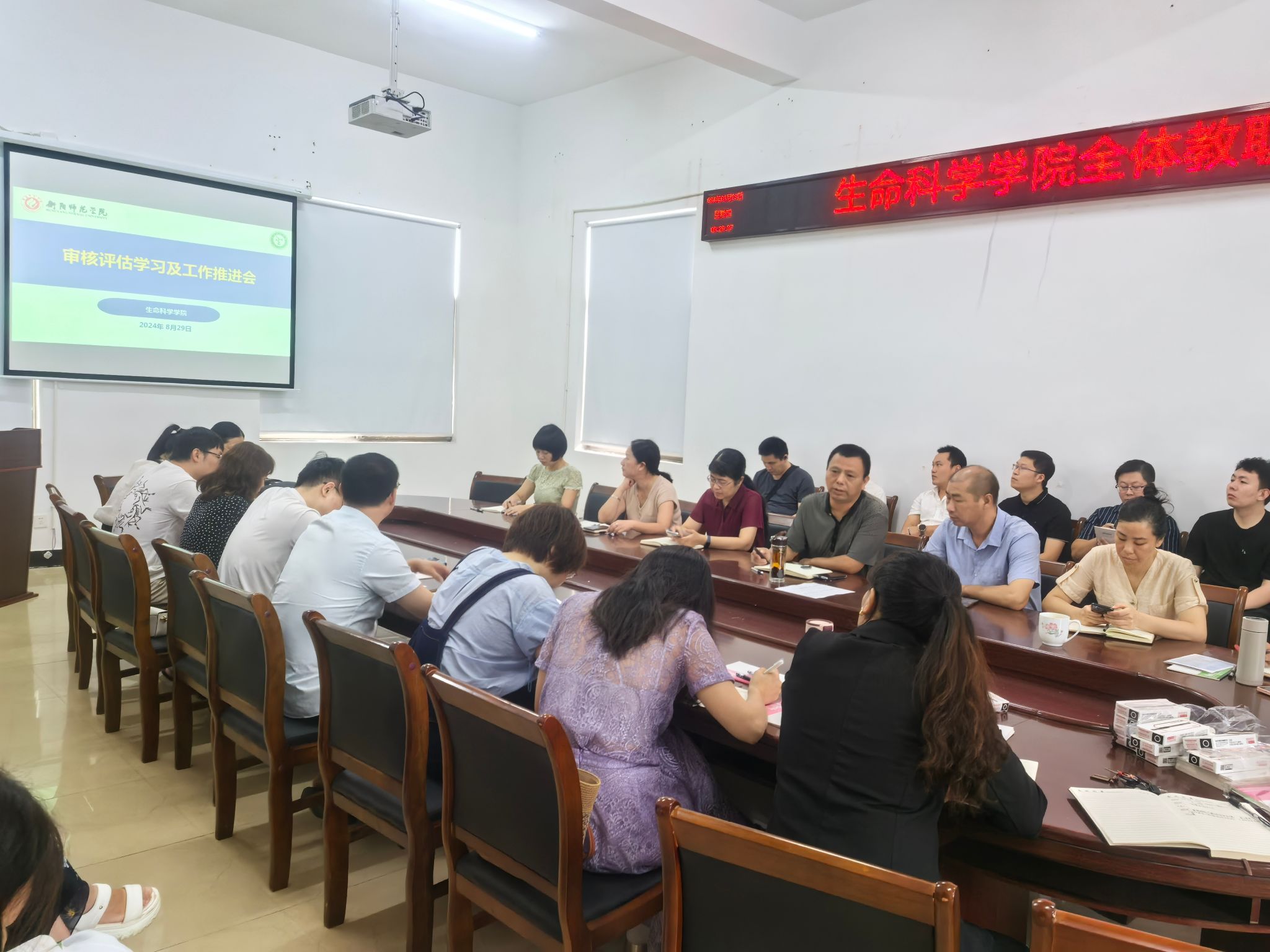 会议由曹书记主持,首先易院长以“审核评估学习及工作推进”为主题作报告,他围绕暑假教学研讨会学习交流、审核评估工作要求、新形势下学院工作的思考三方面展开阐述,报告内容详实,贴近学院工作实际,老师们受益匪浅,接下来,彭芳刚做了《关于本科教学审核评估之教案和课件准备的思考》,彭老师讲解生动,老师们深受启发,最后,学院领导分别就各自分管工作进行了新学期工作安排,新学期,新气象,老师们卯足劲儿,为迎接学校本科教学评估及学院教学、科研、人才培养奋力拼搏。