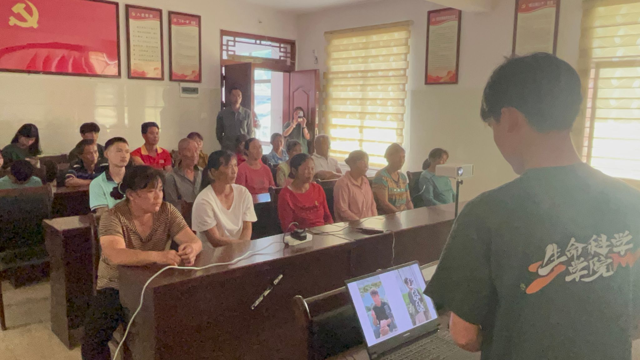 培训由实践团成员彭世海主讲,采用“理论+实操”的教学模式,内容涵盖了电子商务基础知识、短视频制作、直播带货技巧、农产品品牌化运营等多个方面。培训现场,彭世海通过生动的案例分享和实操演示,让村民们深刻领悟到了电商营销的实战过程。