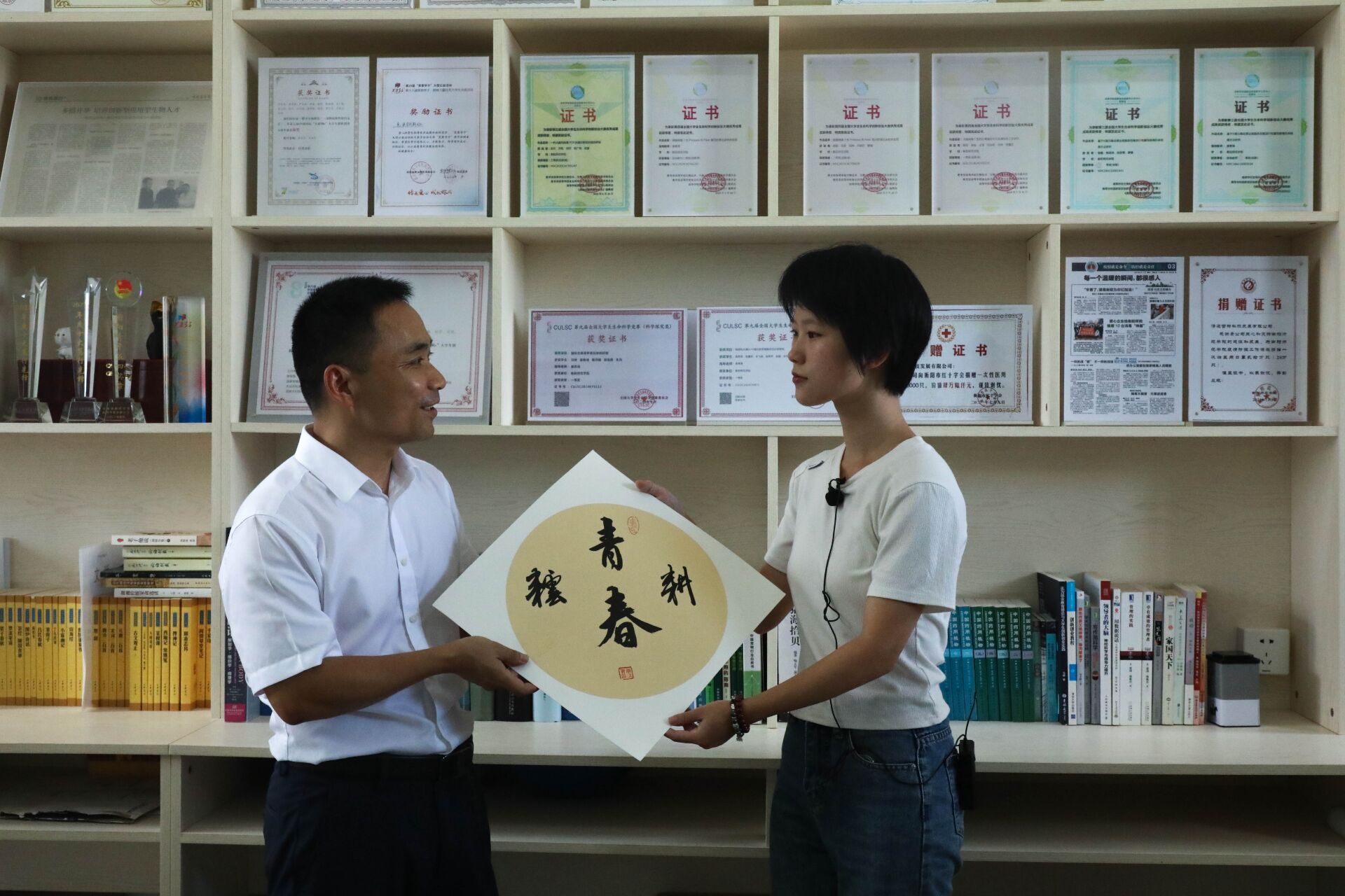“耕耘青春”——这是唐教授对生物科学专业2404班新生杨乐乐的寄语,他期望杨乐乐同学在未来四年丰富的大学生活中能不忘初心,耕耘青春,立志当下。对此,杨乐乐同学说“非常荣幸收到了唐教授的这幅字画,我们当下就应该耕耘青春,以后我也将不辜负唐教授给我的这份礼物,努力学习耕耘青春,把握当下的机会”。
