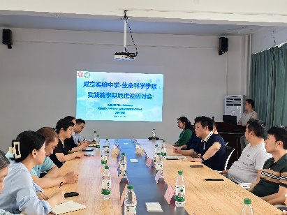 为深化基础教育与高等教育协同育人机制,探索生物创新人才培养“大中小学全贯通”新模式,2025年3月27日,成章实验中学党委书记吕卓、校长袁新海、教务处主任王亚军及生物学教师团队一行应邀到访我院,就实践教学基地建设与生物创新人才贯通培养进行专题交流。交流活动在南岳山区生物资源保护与利用湖南省重点实验室601学术会议室举行,院党总支书记曹丽敏教授、院长易诚教授、副书记陈雅斐、副院长杨海教授、副院长陈晓华教授及教师代表参与交流。
