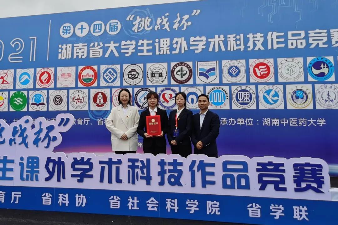 在第十四届“挑战杯”湖南省大学生课外学术科技作品竞赛中,我校学生共获一等奖2项(均为研究生队)、二等奖4项、三等奖4项,而我院3个项目获奖,创历史新高:其中,三等奖2项,二等奖1项(生物药物校企合作实验室产生二等奖和三等奖各一项),三等奖2项分别为陈晓华老师和杨海老师各指导1项,二等奖1项由唐青海老师指导。