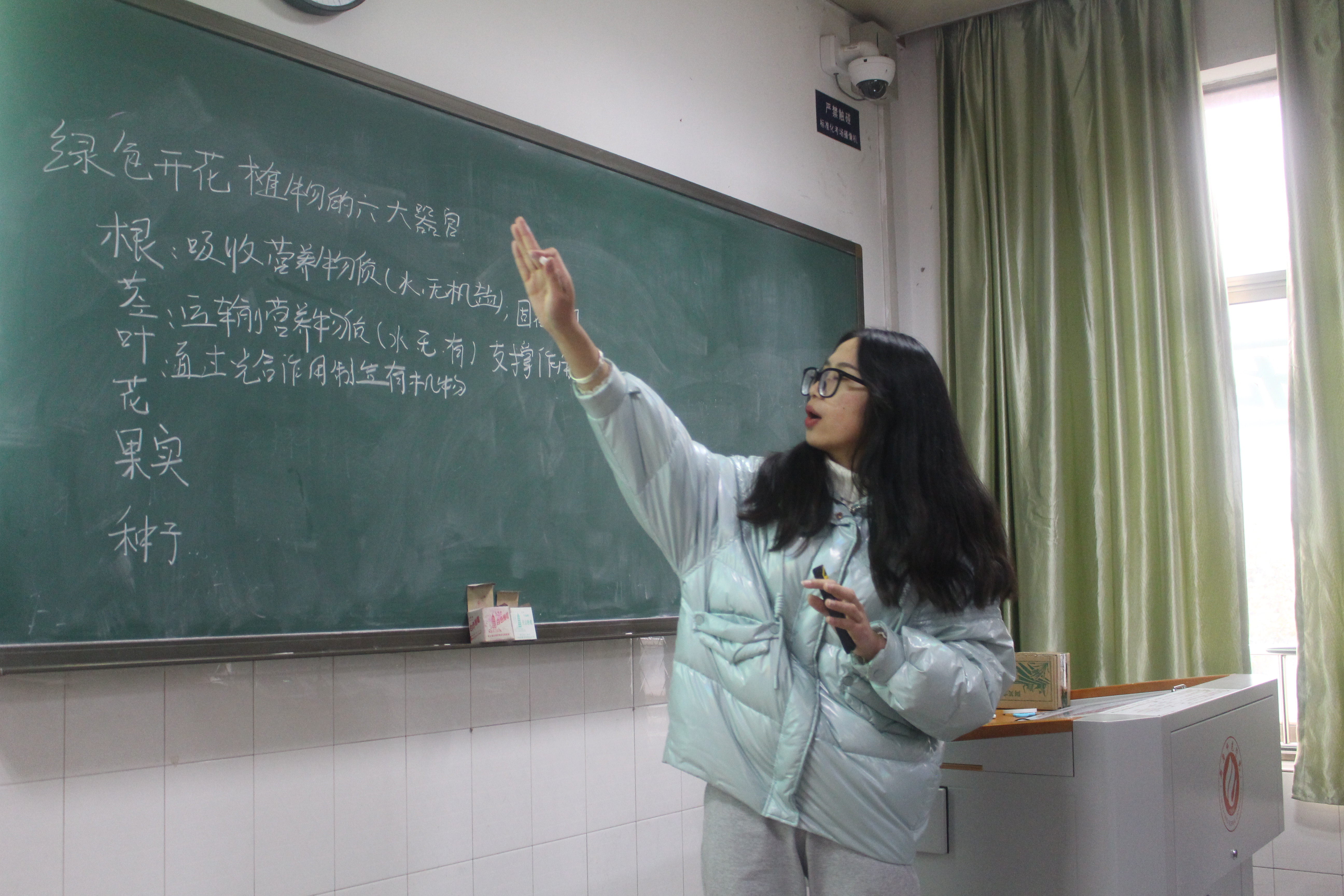 李赢同学从目前大家都关注的“新冠病毒”引出对病毒的探究学习。李鸿雁通过提问“如果被困荒岛,应该先吃鸡还是先吃蛋?”来教学生物圈的能量流动。宾倩的教学声情并茂,全芊芊的教学形象生动。王霞结合视频和现场的实验很好的展现了花朵的结构。付豪颉通过有趣的游戏,让同学们很好的了解绿色植物的结构。