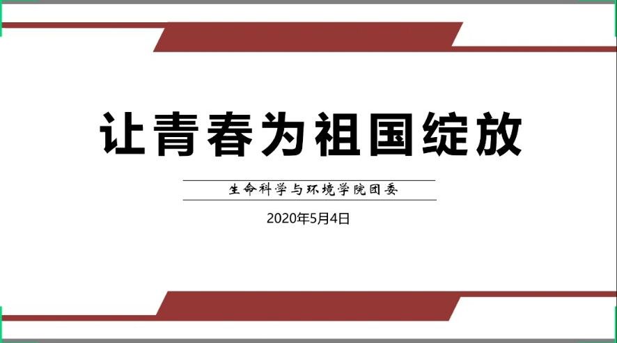 5月4号,我院以“让青春为祖国绽放”为主题的团日活动通过网络会议的形式召开。我院团委书记刘树芬老师,全体团委成员及各班团支书参加本次主题团日活动。团委副书记黄菲主持本次活动。