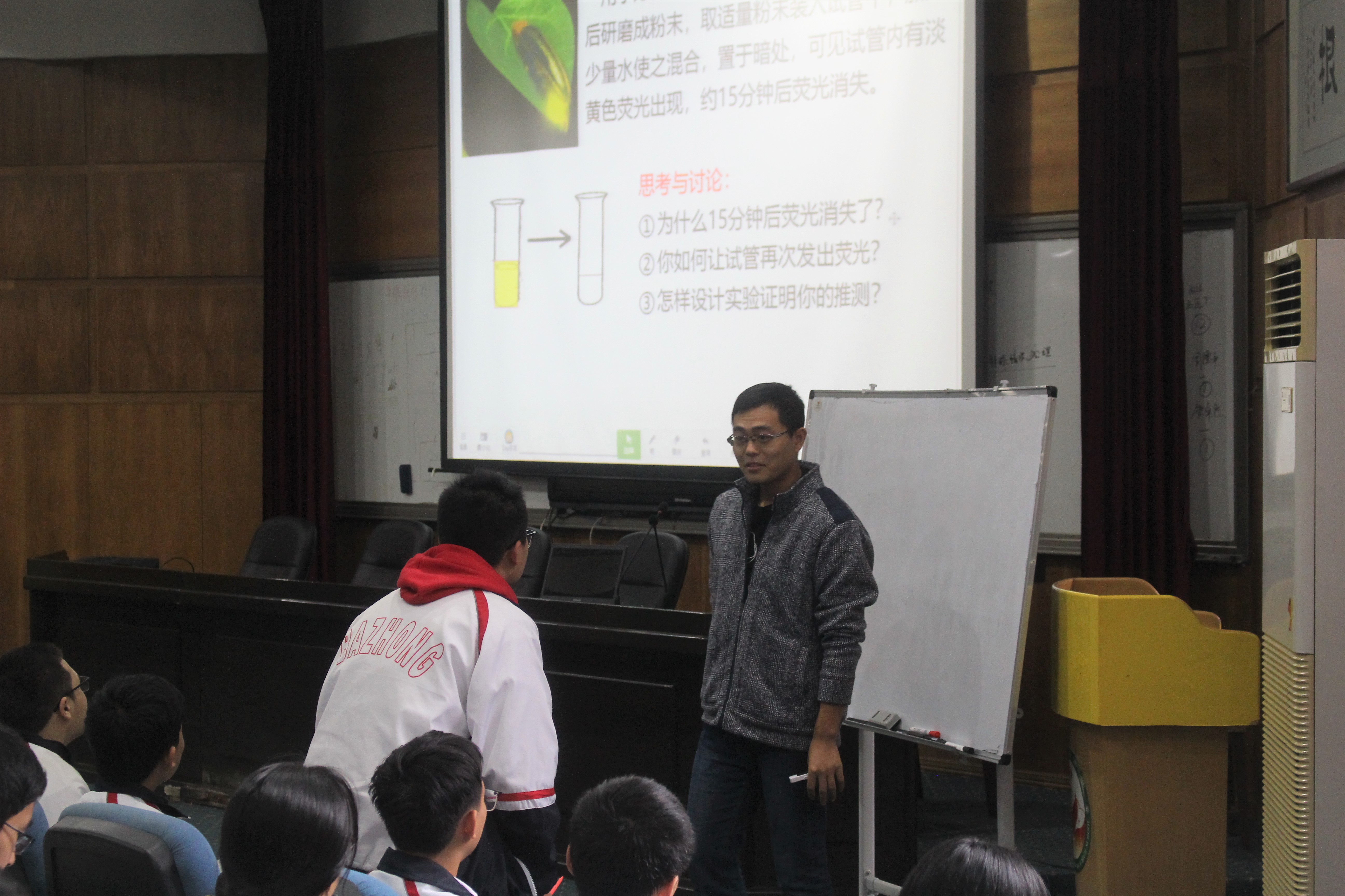 19日早上七时三十分,同学们在老师的带领下来到了衡阳市八中,该中学两位教师分别为大家讲授了各自精心准备的生物课。精美的板书结合丰富有趣的多媒体课件、利用多种形式的教学软件、充分利用微课提升学生学习兴趣,教师们用简洁明了的语言,流利、清晰地表述了所学章节的重难点知识。在场听课学习的同学们用心聆听,做好相关笔记,结束后还与当场授课教师对相关问题进行探讨。