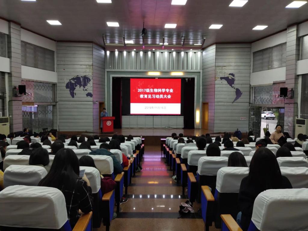 为帮助了解教学改革情况及教师的素质要求,帮助师范生明确师范的职业意识和职业要求。11月18日,我院2017级生物科学专业教育实习动员大会暨初教院教师经验交流大会在西校区模拟法庭举行。我院党支部书记彭晖,院长曹丽敏,副院长杨海,副院长易诚及刘健晖、杨灿、周东升等指导老师出席,由黄慧珍老师主持本次会议。