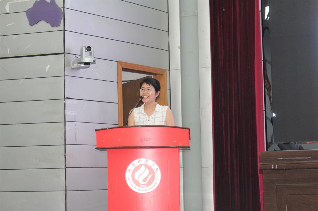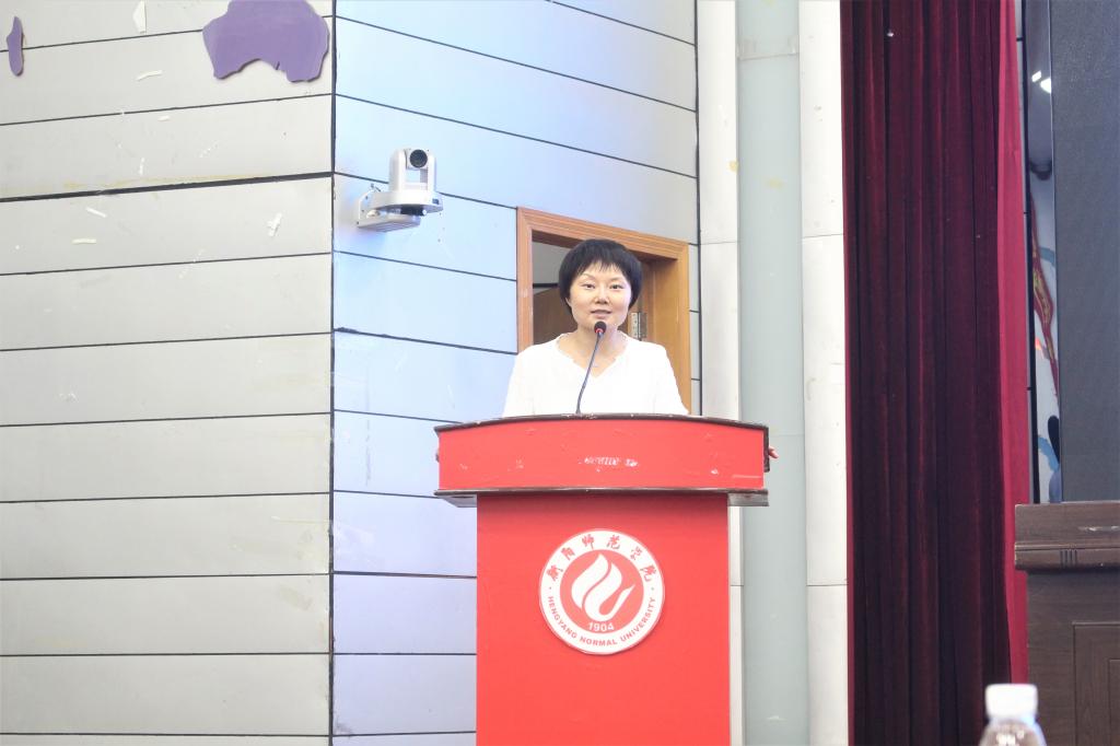 随后,院长曹丽敏致欢迎词。曹院长对考入我院的三百多名新生的到来表示祝贺、欢迎,而后给新生递交学院“优秀的师资”、“优良的学风”、“极高的考研率”这三张名片。她介绍近三年的我院的考研录取情况,表示“我院学生考研无论是数量还是质量都在学校遥遥领先,名列前茅”;详细介绍我院三个本科专业的未来发展方向;提出相关行为准则,望大家牢记初心,“从零开始,重新拼搏”,善待自己,善待他人。会议上,她还提到了“三个八理论”——即八小时工作,八小时睡觉,八小时合理安排,指出“谁学会主动学习,谁就学会了大学生活”,高中时学习常识,而大学是学习科学,作为一名大学生应学会独立思考,学会抵制诱惑,具有主动学习、合理利用课余时间的能力。最后,她警醒大家要把握住空余时间,在大学里不负青春,