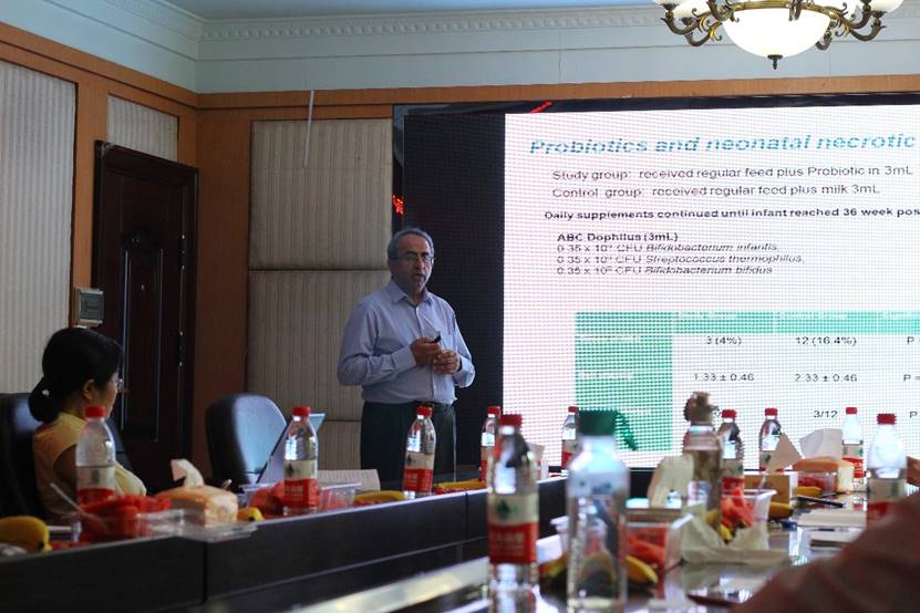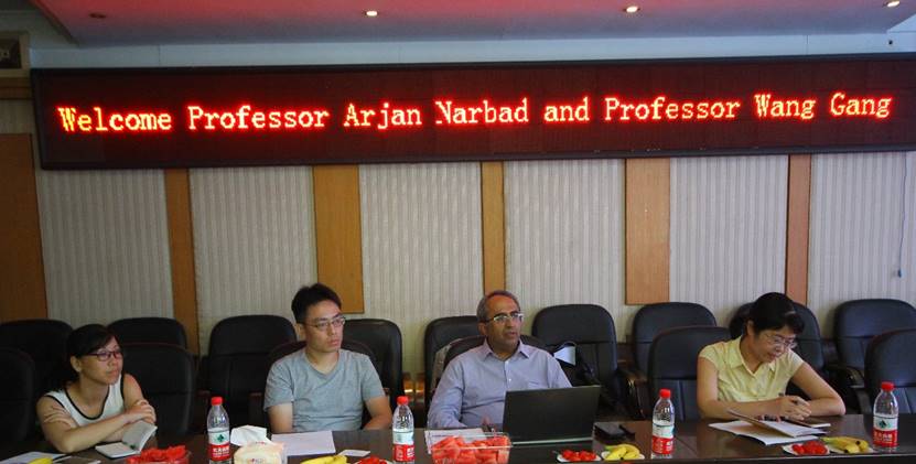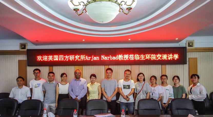2019年8月19日上午,英国四方研究所Arjan Narbad教授及江南大学王刚教授莅临生命科学与环境学院讲学,作了题为《Gut Microbiome in Health and Disease》的学术报告。出席报告会的有生命科学与环境学院院长曹丽敏教授、副院长易诚教授以及我院周东升、陈晓华、王志新、唐青海、彭芳刚及李建周等专业教师,2017级部分食品专业学生到场聆听。