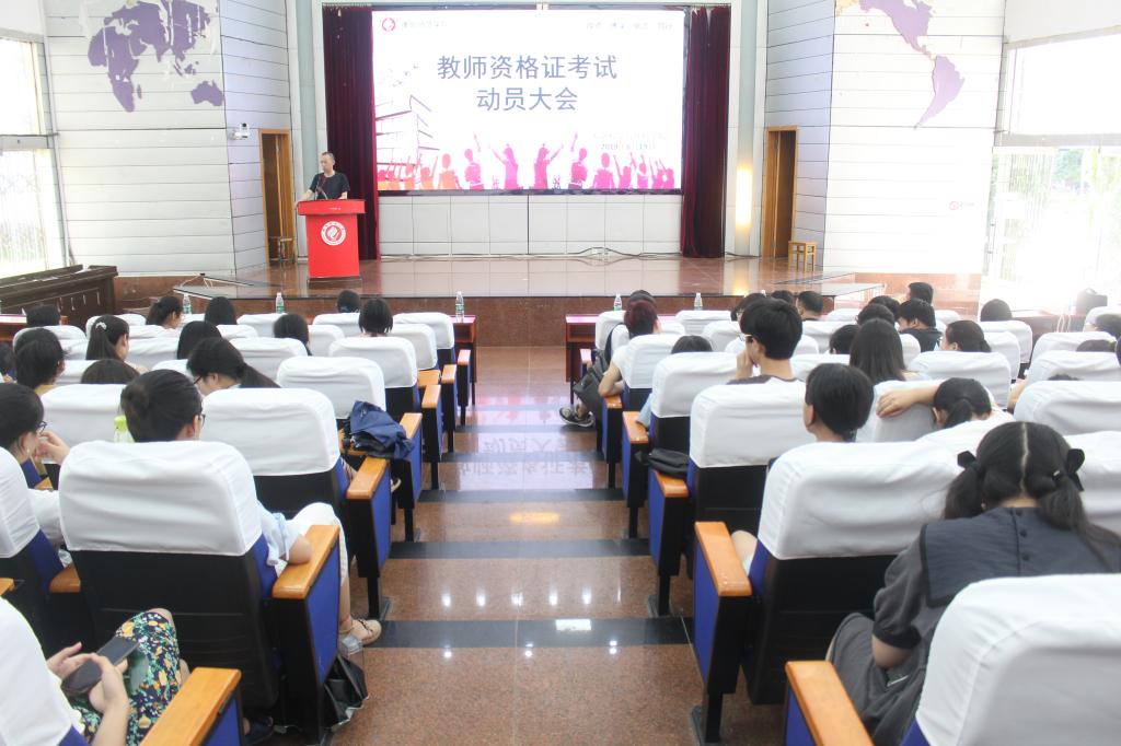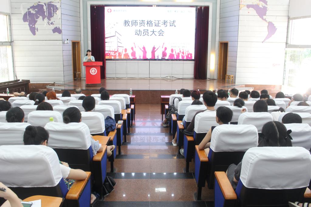 为切实做好师范生教师资格证迎考工作,督促同学们尽早进入教师资格证考试的备考状态,6月19日下午三点,我院特此召开2019年教师资格证动员大会,大会在西校区模拟法庭准时举行。党支部书记刘艳波,院长曹丽敏,副院长易诚,黄慧珍、刘健晖、滕涛、唐兴等老师出席本次会议并做动员指导。此外,还邀请到了新航道教育衡阳校区负责人谢利华先生,新航道教育教师资格证高级讲师刘捷进行了相应讲解。17级全体师范专业学生到场聆听。
