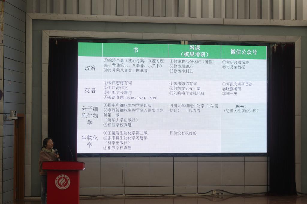 5月8日下午14:30,学院在西校区模拟法庭开展考研经验交流会,生命科学与环境学院党总支书记刘艳波,院长曹丽敏,副院长杨海、易诚,团委书记刘树芬,辅导员许若霏老师以及各专业老师莅临本次交流会。何婷婷,伍牧锋等7位优秀考研学生代表作为嘉宾来到现场,与我院16级,17级有意向参与考研的学生分享考研经验。