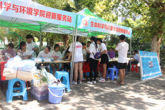 为做好生命科学与环境学院2018年迎新工作,我院早在7月12日开展了迎新志愿者培训会。我校今年采用了“数字化”迎新:线上网络迎新与线下现场服务配合展开。工作人员暑假期间已开展新生信息录入、生活用品采购等迎新工作事宜。由此,新生报到流程在家即可完成一半,缴纳学费可在湖南移动非税平台上完成,被褥等生活用品采购与新生信息录入等流程可在“今日校园”APP完成。此外,我院于9月18日晚召开了迎新动员大会,明确并细化了迎新工作安排。