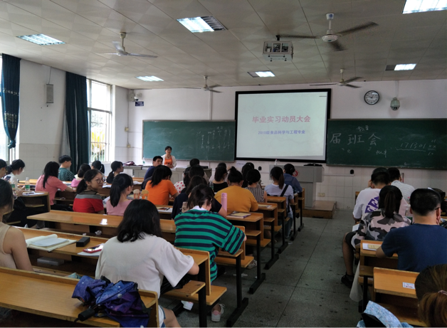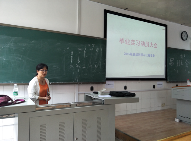 为保障实习工作的顺利开展,2015级食品科学与工程专业毕业实习动员大会于2018年7月13日上午在西外语楼102教室顺利召开,易诚副院长、宾冬梅教授、陈晓华博士和相关专业老师参加会议。