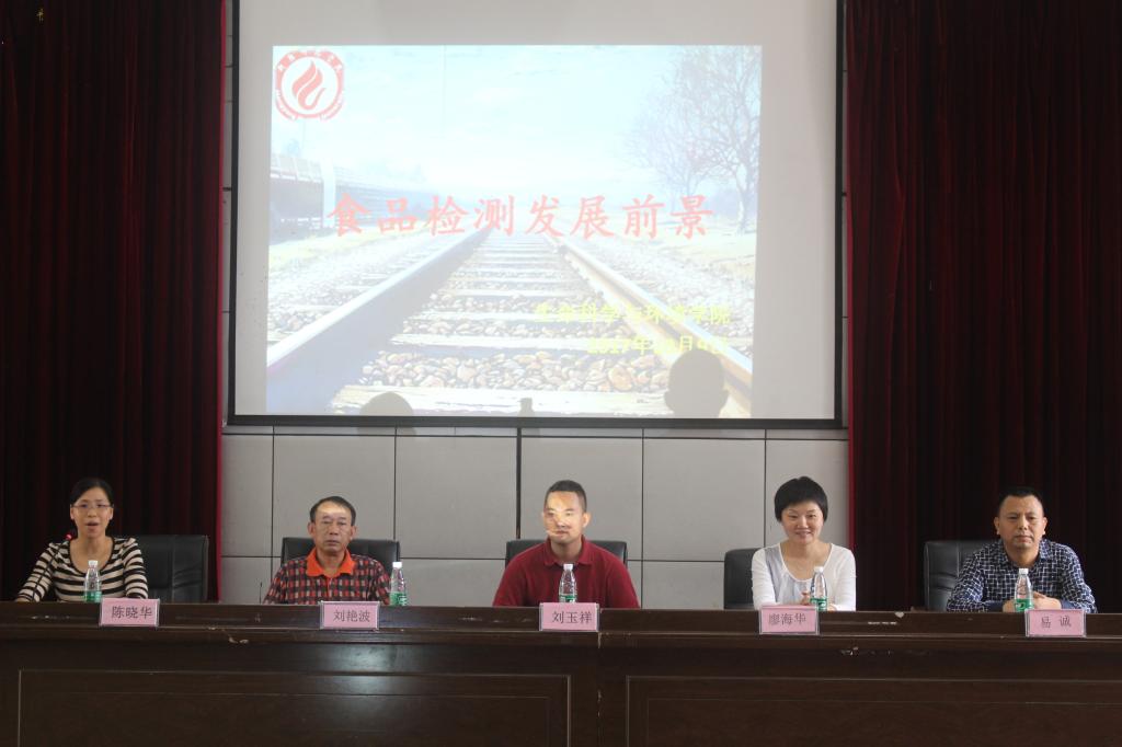 2017年10月9日下午3点,我院07级生物科学专业校友刘玉祥,现任深圳中检联检测(集团)有限公司食品快速检测部负责人,应邀在西校区模拟法庭作了题为 “食品检测发展前景”的学术报告。我院党总支书记刘艳波、党总支副书记廖海华、副院长易诚、宾冬梅教授、陈晓华副教授和李建周老师出席本次报告会,我院16级生物科学和食品科学专业的全体学生参加讲座。