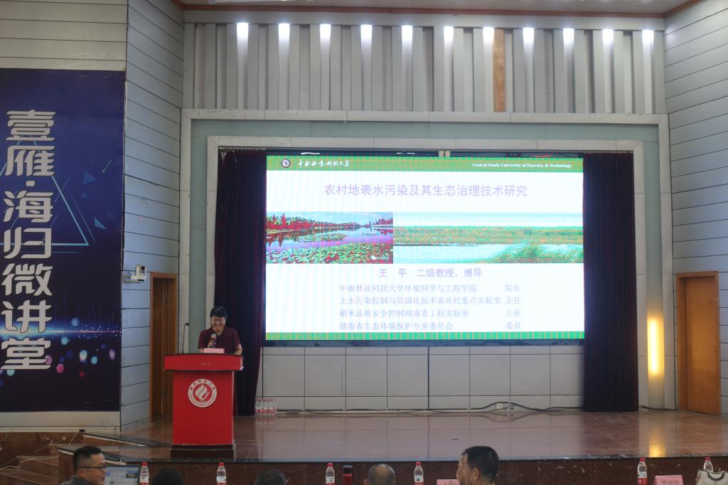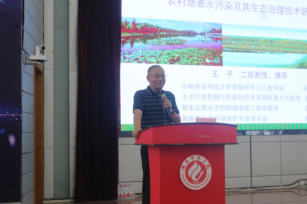 9月28日下午3点,我院特邀中南林业科技大学环境与工程学院院长王平教授在西校区模拟法庭做了题为《农村地表水污染及其生态治理技术研究》的学术报告。报告会由生命科学与环境学院院长曹丽敏主持,中南林业科技大学环境科学与工程学院领导老师,南岳学院院长,生命科学与环境学院师生聆听了本次讲座。