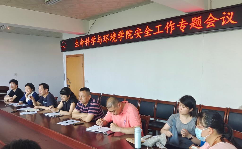 4月28日下午4点半,生命科学与环境学院在千禧楼会议室召开了安全工作专题会议,学院领导班子成员、专业负责人、实验室全体成员、毕业班班主任参加了此次会议,会议由彭晖书记主持。