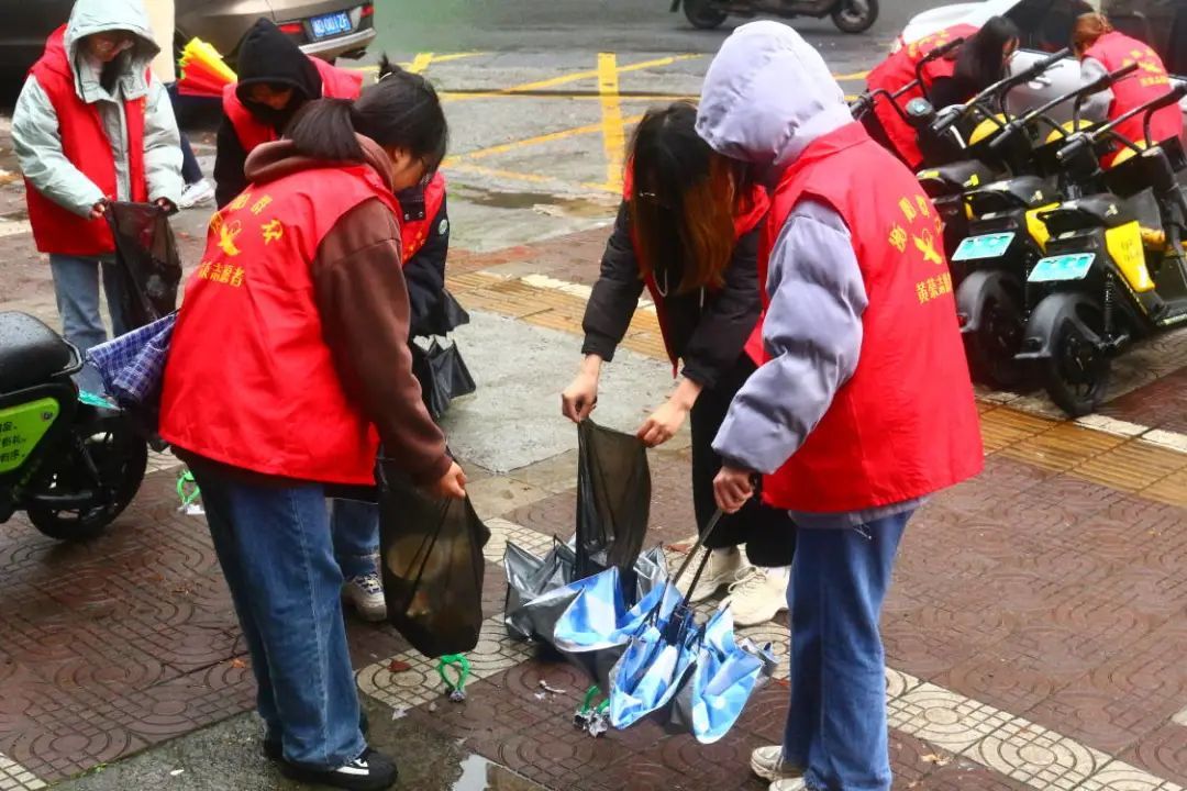在刘老师带领下,团员们身穿红马甲,拿着拾取钳,开始清理社区的垃圾及枯叶。细雨蒙蒙不断,但刘老师用实际行动做了示范,大家深受感染,更加努力清扫。那些雨中依旧认真拾取垃圾的身影,那份不放过细小纸屑的执着,都体现了我院团员的奉献精神。“牛皮癣”细薄粘黏十分不好清理,大家坚持不懈地用铲子进行刮除,最终将电线杆上顽固的“牛皮癣”清理干净,圆满完成清洁任务。