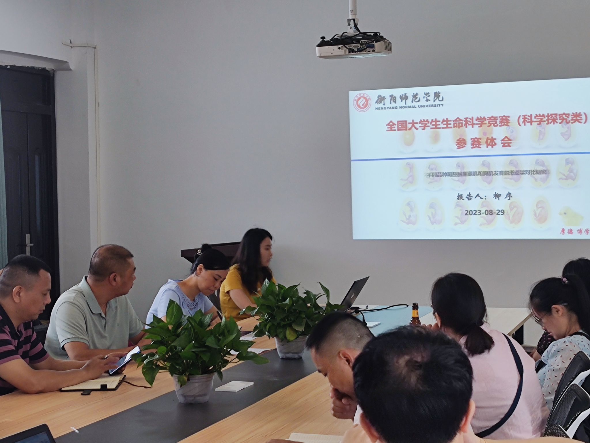 接下来,交流会特邀柳博士就全国大学生生命科学竞赛(科学探究类)参赛体会进行了精彩的经验分享,柳博士指导的“不同品种鸡胚胎期腿肌和胸肌发育的形态学对比研究”获得全国大学生生命科学竞赛国家一等奖。柳博士重点围绕“如何准备网评材料和答辩注意事项”这两个问题展开详细讲述,并与与会人员进行了深入讨论,她的分享深入浅出,得到领导老师的一致赞赏。