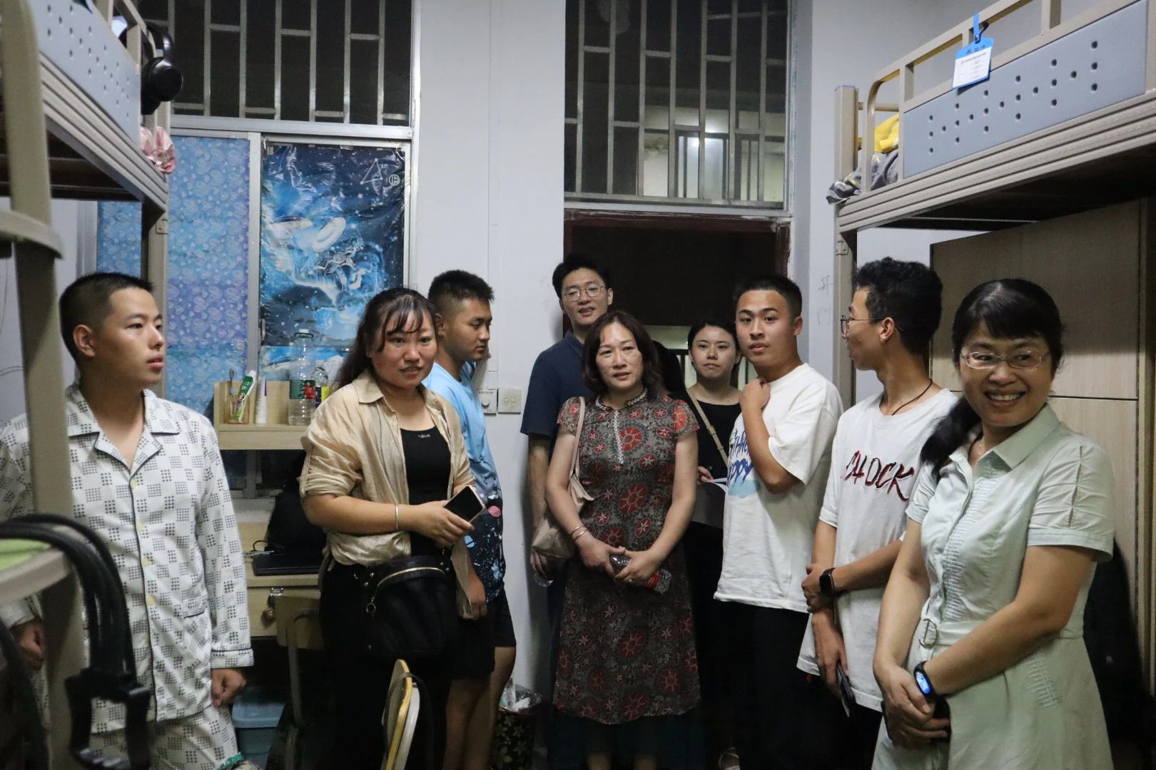 走访过程中,每到一个宿舍,学院老师都融入到新生当中,与新生进行亲切交谈,关心他们来到学校后是否适应,询问有什么困难,并仔细查看宿舍的各种设施是否完善。