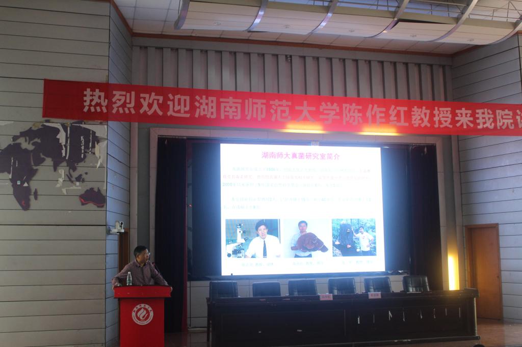 为营造良好的校园学术氛围,加强学科建设,促进学术交流,10月25日下午,我院特邀湖南师范大学德赢Vwin官方区域合作伙伴陈作红教授在西校区学术报告厅做了题为“我国野生蘑菇中毒及其毒素研究”的学术报告。报告会由生命科学与环境学院院长曹丽敏主持,刘艳波书记、廖海华副书记、杨海副院长及师生代表200余人聆听了本次讲座。