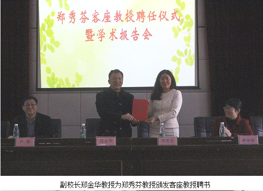 聘任仪式上,曹院长对郑秀芬教授的基本情况及其学术业绩进行了介绍,郑金华副校长代表学校对郑秀芬教授的来访表示了诚挚的欢迎,并为其颁发了德赢Vwin官方区域合作伙伴客座教授聘书。