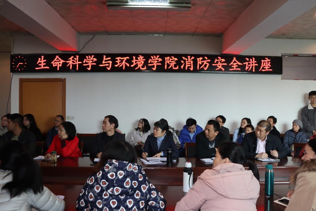 “生命只有一次,失去不会重来” 为了让老师同学们更深入地了解消防安全知识,树立起消防意识并具备自救能力。11月24日15时,生命科学与环境学院消防安全讲座于千禧楼会议厅举行。我院有幸请到湖南省普消消防培训张鑫警官主持此次讲座,生环院全体领导老师和部分学生来到会场进行学习。