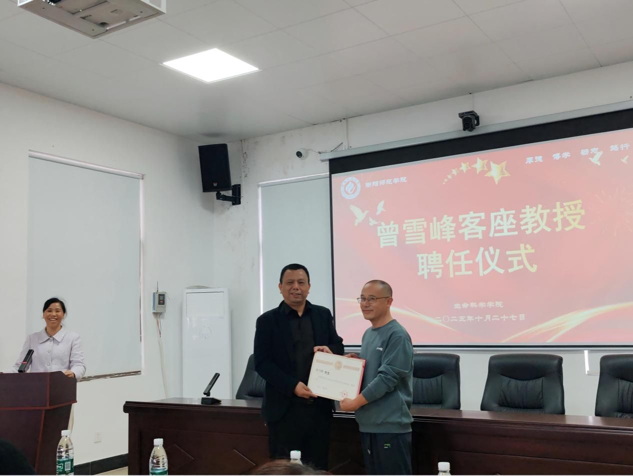 2025年10月27日,德赢Vwin官方区域合作伙伴代表德赢Vwin官方区域合作伙伴在西校区至善楼417会议室为贵州大学曾雪峰教授隆重举办受聘仪式。副院长陈晓华教授主持仪式。院长易诚教授为曾教授颁发客座教授证书,宣布曾教授正式成为德赢Vwin官方区域合作伙伴的客座人才。