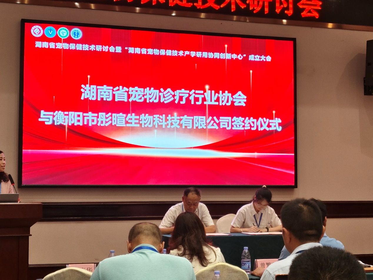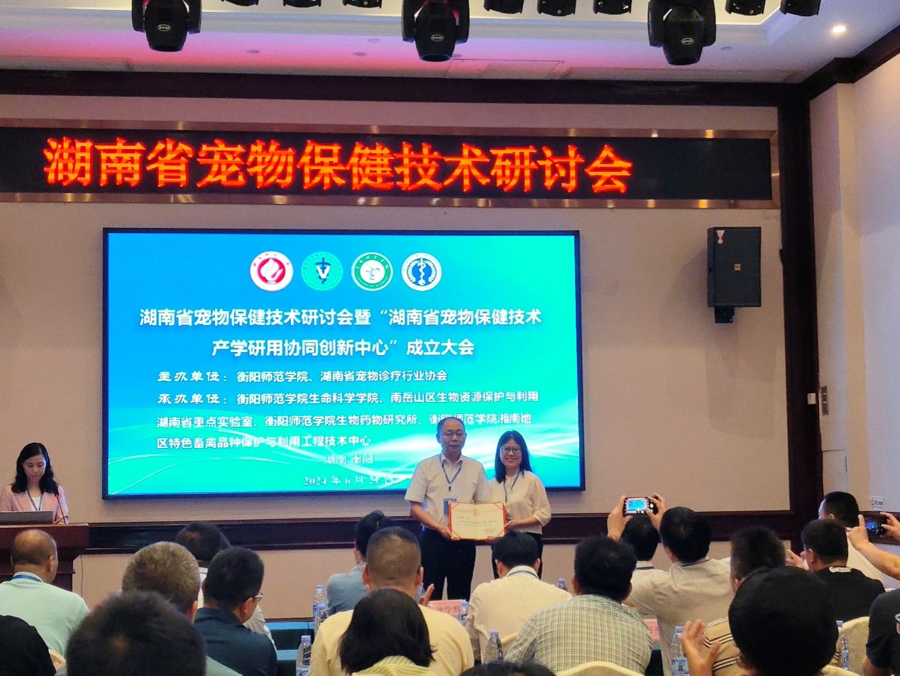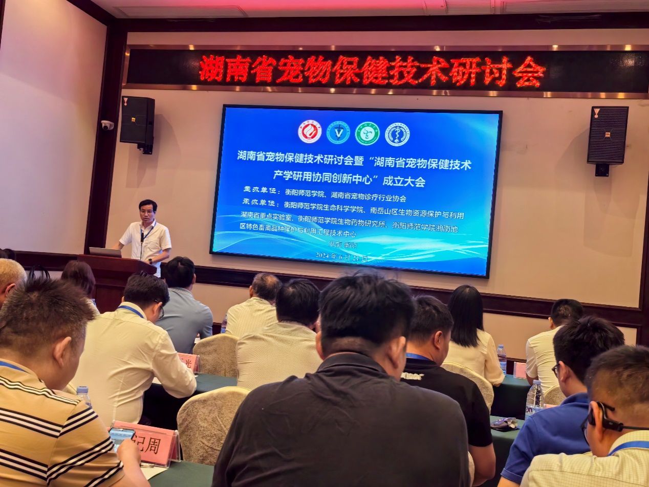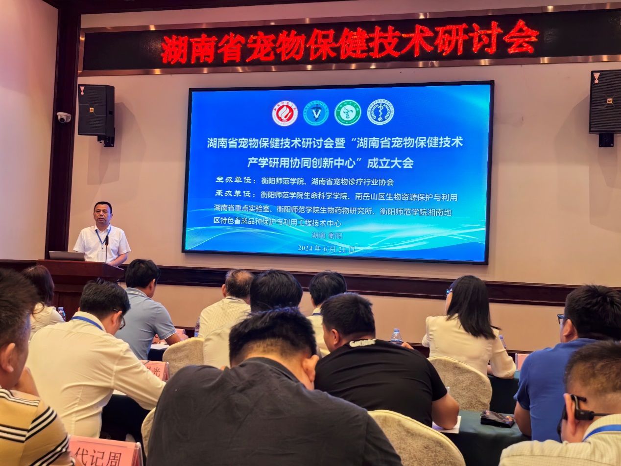 湖南省宠物保健技术研讨会暨“湖南省宠物保健技术产学研用协同创新中心”成立大会于2024年6月21日在衡阳市召开。本次会议由德赢Vwin官方区域合作伙伴和湖南省宠物诊疗行业协会联合主办,由德赢Vwin官方区域合作伙伴、南岳山区生物资源保护与利用湖南省重点实验室和德赢Vwin官方区域合作伙伴生物药物研究所、德赢Vwin官方区域合作伙伴湘南地区特色畜禽品种保护与利用工程技术中心联合承办。湖南省宠物诊疗行业协会会长钟学辉、秘书长胡锡光、副会长袁焕新、副会长赵道贵、衡阳市畜牧水产事务中心副主任曾繁荣、德赢Vwin官方区域合作伙伴科研处处长邓运员教授、德赢Vwin官方区域合作伙伴合作发展与校友联络中心主任陈梅香、德赢Vwin官方区域合作伙伴现代教育发展学院院长唐斯萍教授、德赢Vwin官方区域合作伙伴院长易诚教授、副院长杨海教授、副院长陈晓华博士、南岳山区生物资源保护与利用湖南省重点实验室常务副主任唐青海教授及湖南省宠物医疗、保健、食品行业的专家、行业企业代表及高校师生参加了本次会议。