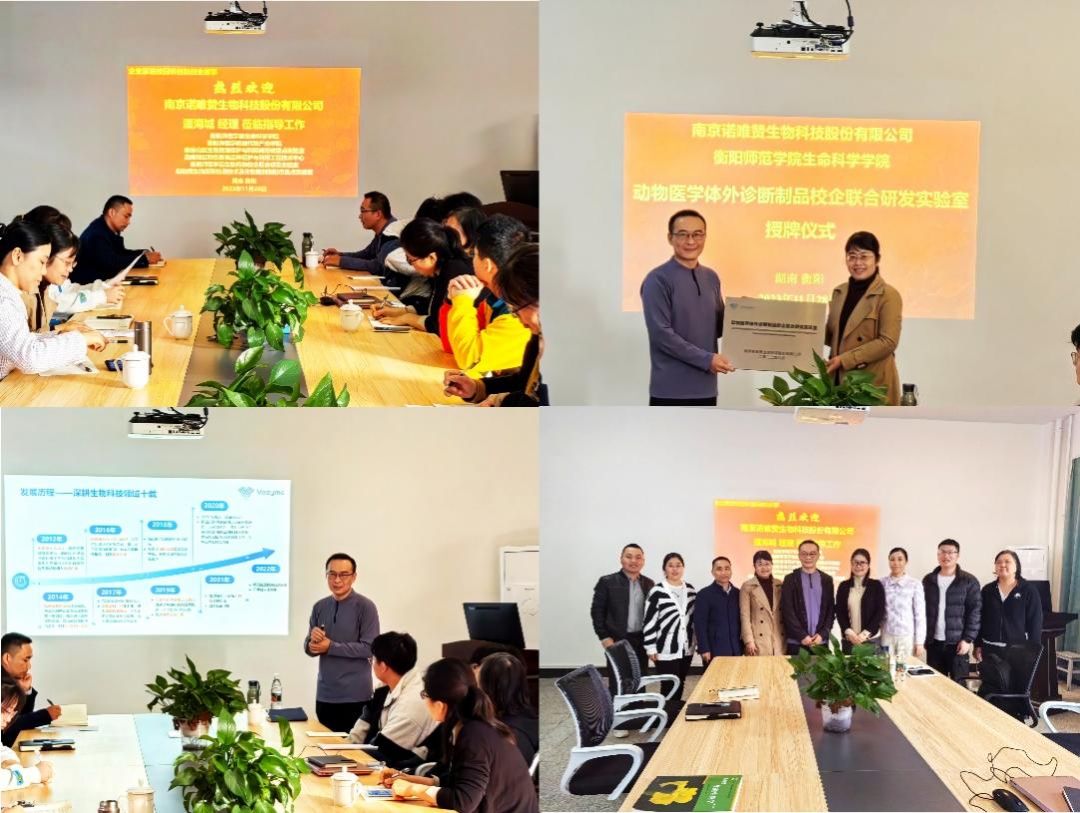 曹丽敏书记首先介绍了潘海城经理的学术背景,接着,进行了“动物医学体外诊断制品校企联合研发实验室”的授牌仪式。随后,潘海城经理为我院师生分享了一堂生动的创新创业课。诺唯赞历经十年风雨,一路披荆斩棘,最终做到享誉全球的生物科技“芯片”制造商,他们的核心就是科技创新、技术创新、紧随时代脚步向前冲。师生们听后很有感触,积极进行交流,大家表示,企业家带来行业需求信息,为高校的应用研究和应用基础研究带来启发,企业家进校园讲创新创业故事能够给学生带来创新创业的动力,为高校的人才培养提供助力。希望双方能够进行更深入更全面的校企合作,促进校企双方互相支持、优势互补、资源互用、利益共享,进一步促进我院应用型人才培养质量的提升。