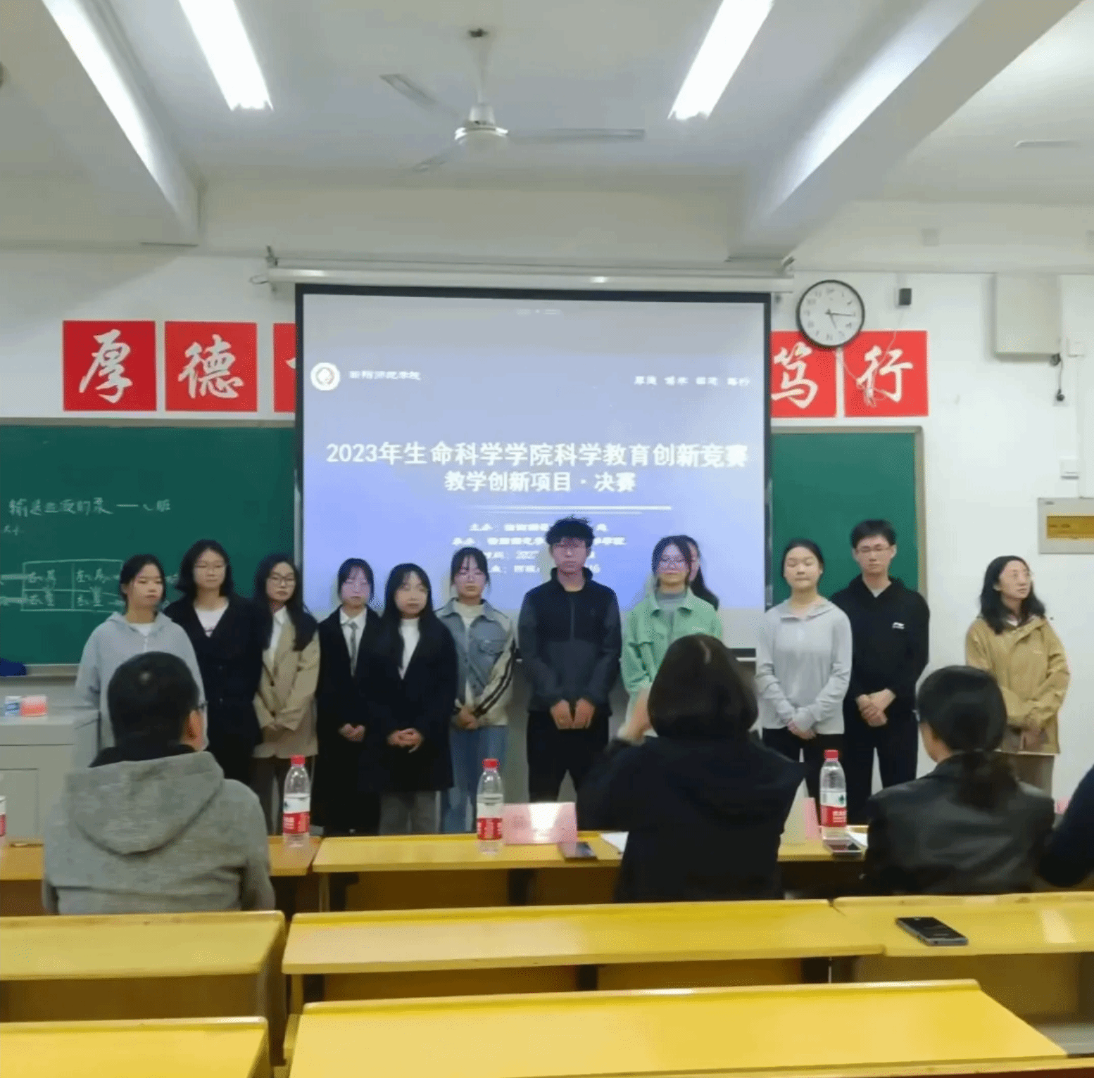 首先是教具与器材制作项目,参赛同学都拿出了自己组独特的作品,并细致地向各位评委展示教具的特色和创新之处。然后是教学创新项目,实验操作单项阶段中,选手们都沉着冷静地完成了规定的实验项目,并完整记录了实验结果,展现出生物科学专业师范生们扎实的实验操作技能;在即席演讲和模拟授课单项中,选手们根据教学设计方案,利用多种教学技能和策略,构建了各具特色的创新课堂。经过了选手们激烈的比拼后,评委们对选手进行逐一点评。