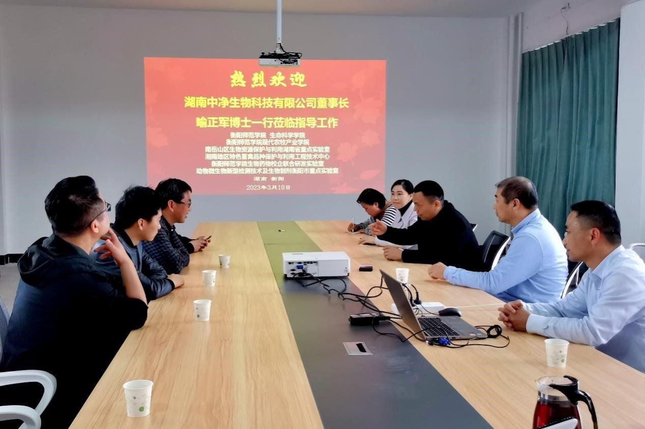易诚院长表示,喻正军博士是我们的亲密朋友、湖南中净生物科技有限公司是学院的亲密合作伙伴,十分感谢公司长期以来对学院工作的支持;前期,双方在人才培养、就业实习、技术开发等方面开展了合作,希望双方能够以现代农牧产业学院为平台,抓住现代农牧产业发展契机,继续拓展院企合作形式、提升合作的质量,深度推进“产教研用”融合发展。