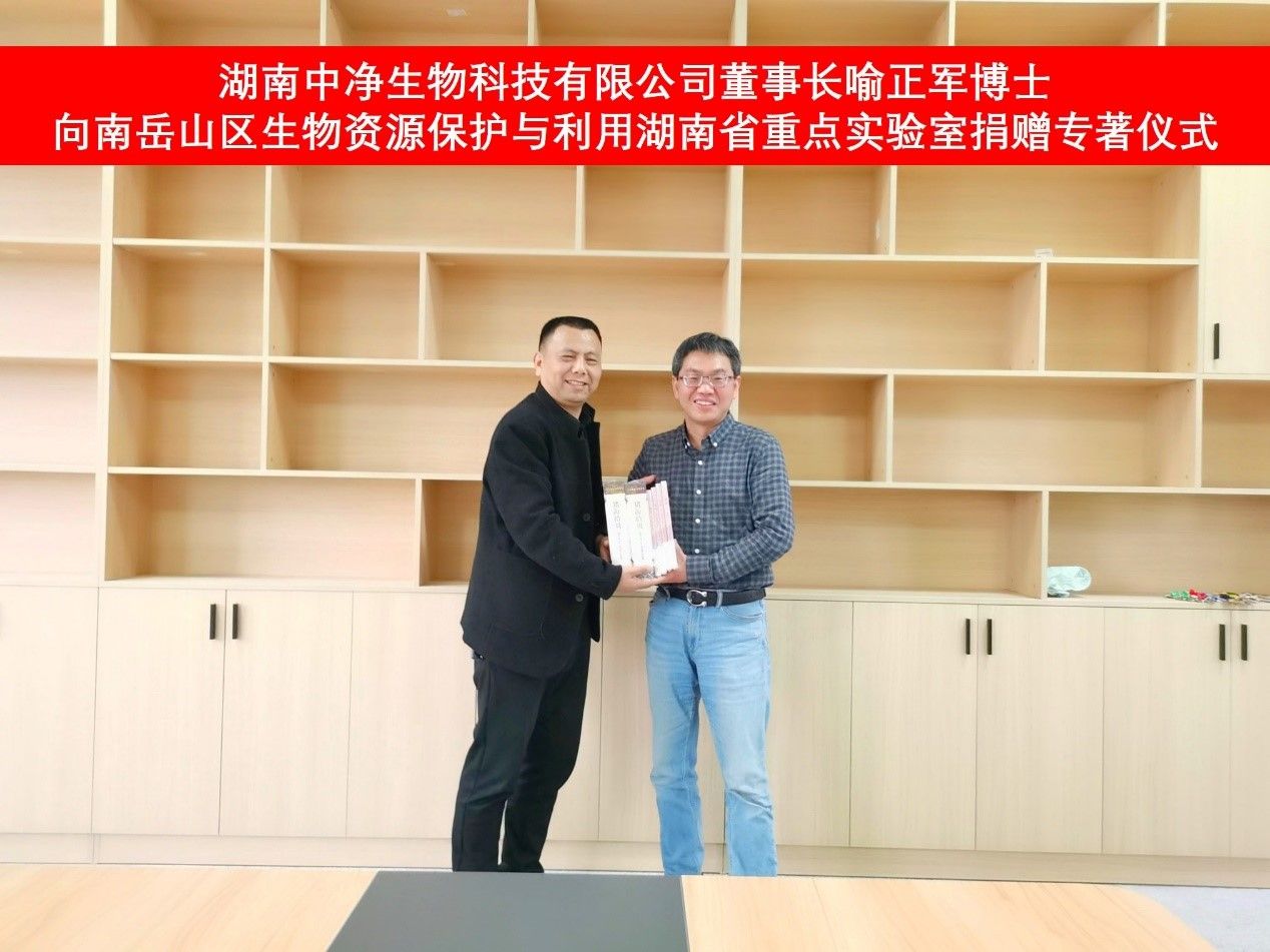 洽谈会后,喻正军博士为我院“南岳山区生物资源保护与利用湖南省重点实验室”和“现代农牧产业学院”捐赠了《猪海拾贝》等多套专著,易诚院长代表学院接受了捐赠。
