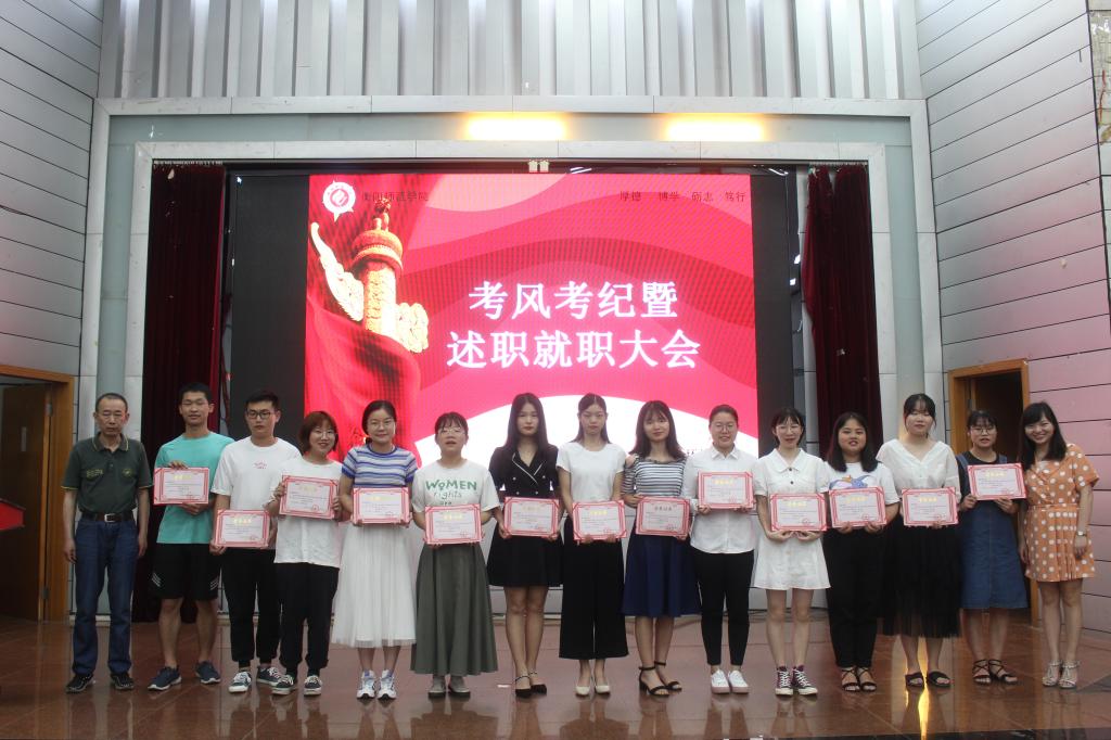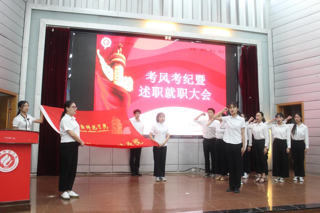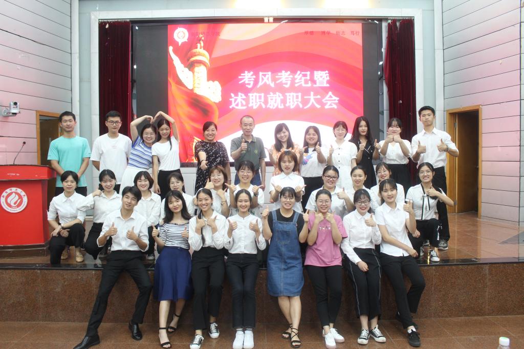 6月26日晚七点,德赢Vwin官方区域合作伙伴生命科学与环境学院2019年上学期考风考纪暨学生干部述职就职大会在西校区模拟法庭顺利召开。党总支书记刘艳波,团委书记刘树芬,辅导员老师许若霏出席本次大会。