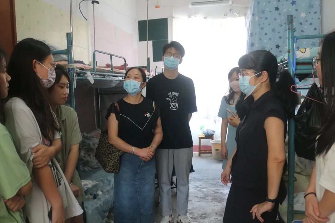 经过一个超长假期之后,我们迎来了开学,回到阔别已久的学校继续生活。为了保证更加安全舒适的宿舍环境,我院党总支书记曹丽敏,党总支副书记陈雅斐,以及辅导员老师刘树芬、许若霏、唐乾翔在9月4日开展了下寝走访慰问。