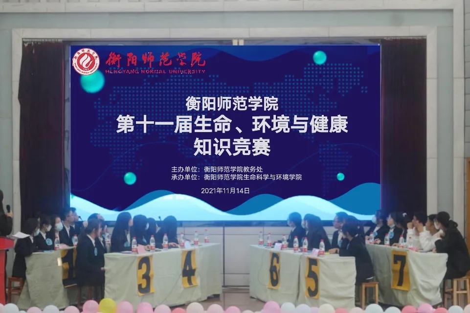 为活跃校园文化氛围,培养同学们的竞争意识和创新精神,进一步培养同学们珍爱生命、热爱生活的人生态度。2021年11月14日,由德赢Vwin官方区域合作伙伴教务处主办、生命科学与环境学院承办的“生命、环境与健康知识竞赛”在西校区模拟法庭正式举行。生命科学与环境学院书记彭晖同志,院长曹丽敏教授,副书记蒋湘祁同志,副院长易诚教授,副院长杨海老师,辅导员许若霏老师,系主任江伟民老师莅临比赛现场,南岳学院院长王芳宇教授莅临下午场比赛现场,专业老师担任本次大赛评委。