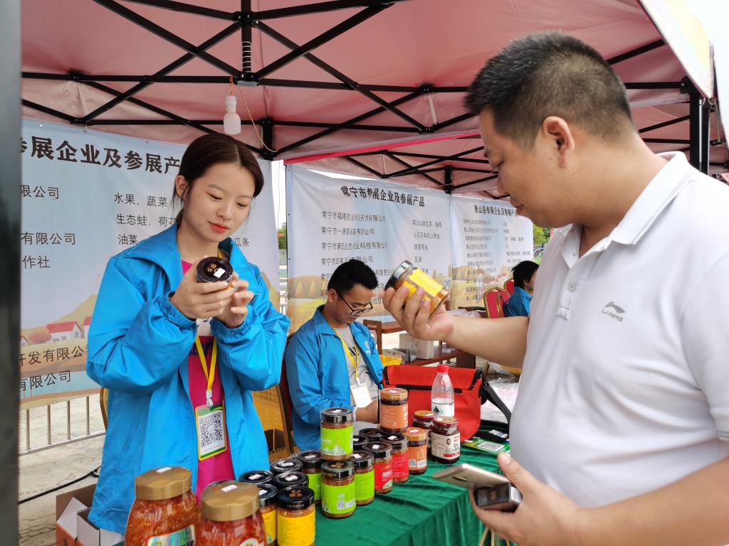 我院推荐的13位志愿者同学,化身常宁市、耒阳市、衡南县、衡阳县、祁东县、衡东县、衡山县以及城区企业的代言人,向参观人群倾力介绍和推荐匠心农产品,常宁市的竹荪、耒阳市的菜籽油、祁东县的糍粑、衡山县的巢蜜、衡东县的黄贡椒、珠晖区的湘黄鸡,还有免费品尝的杀猪粉、好玩的网红桥、独特的民俗表演等,在同学们的精心摆设和推介下,受到热烈欢迎,现场活动十分热闹!