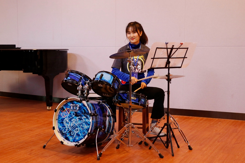 第二天,比赛考验选手们的其他才艺,我院学生“各显神通”。尹亮现场制作了手工玫瑰,并附寓意:赠人玫瑰,手留余香;杨慧菲,张艳翎,向建博都选择了吉他弹奏,其中杨慧菲的表演更胜一筹;武小琪则选择了在女生中不太大众化的才艺:《改变自己》架子鼓演奏,伴随着鼓欢快有力的敲打,现场的气氛也逐渐升温。