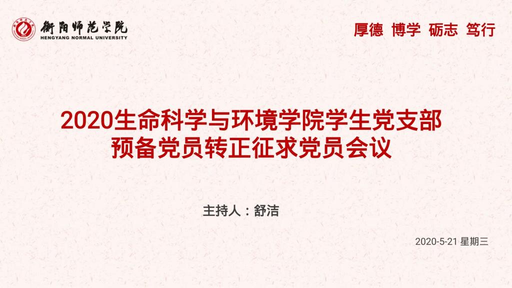 2020年5月25日下午3时,在全世界都努力抗击疫情的特殊开学季,我院学生支部预备党员转正会议以腾讯会议的形式开展。党总支书记彭晖,副书记蒋湘祁,副院长杨海,学生党支部书记许若霏及王志新、陈晓华等老师莅临会议。会议由学生党支部副书记舒洁主持,党支部副书记董琼宣布票决结果。