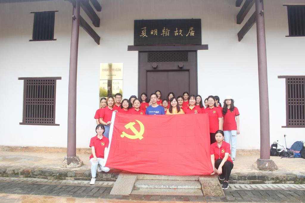 上午8时许,全体党员在学院党总支书记彭晖、学生支部书记许若霏的带领下来到了洪市镇礼梓村参观夏明翰故居。在夏明翰纪念广场雕像前,彭晖书记向党员同志介绍了夏明翰的生平事迹及《就义诗》的背景故事。听完后,在场的党员顿时对这位革命先烈肃然起敬。他从三点引导大家体会思考:一要铭记历史,缅怀英烈。二要坚定信念,不忘初心。坚决与以习近平同志为核心的党中央保持高度一致,把政治纪律和政治规矩摆在前面,做政治上的“明白人”。三要敢于担当,开创未来。作为当代大学生,应当珍惜眼前的幸福生活,树立远大的目标;加强学习修养,砥砺意志品格,练就敢于担当、善于担当的本领,为建设中国特色社会主义事业贡献出自己的一份力量。