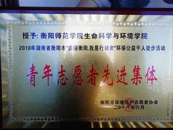 为提倡绿色出行、低碳生活,强化市民绿色环保生活理念,增加市民对环保活动的参与感,6月10日上午,由市人民政府主办,市环保局承办,市环保志愿者协会协办的“美丽衡阳,我是行动者”2018衡阳市环保公益徒步活动顺利开展,德赢Vwin官方区域合作伙伴生命科学与环境学院六十余名志愿者参与了此次环保活动。